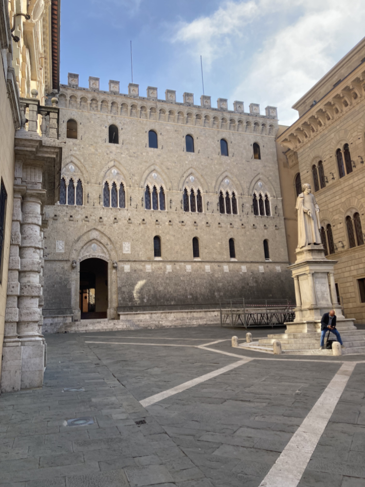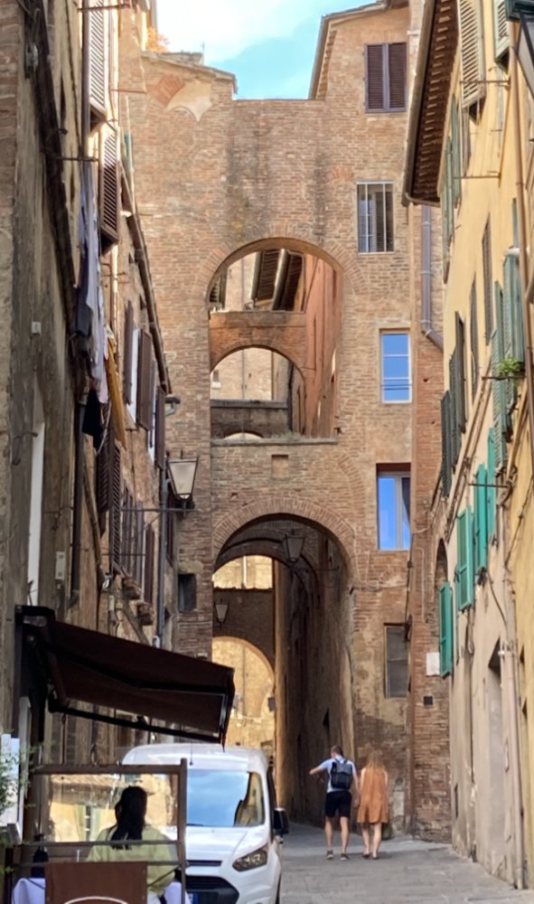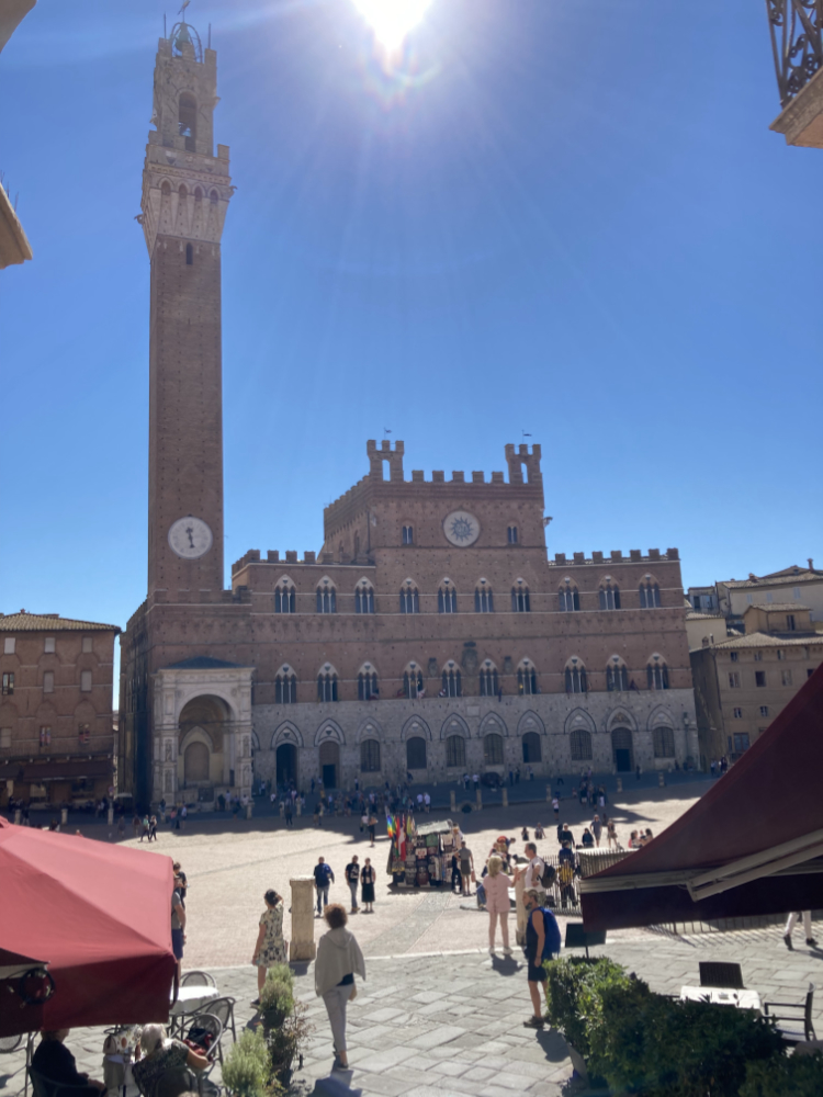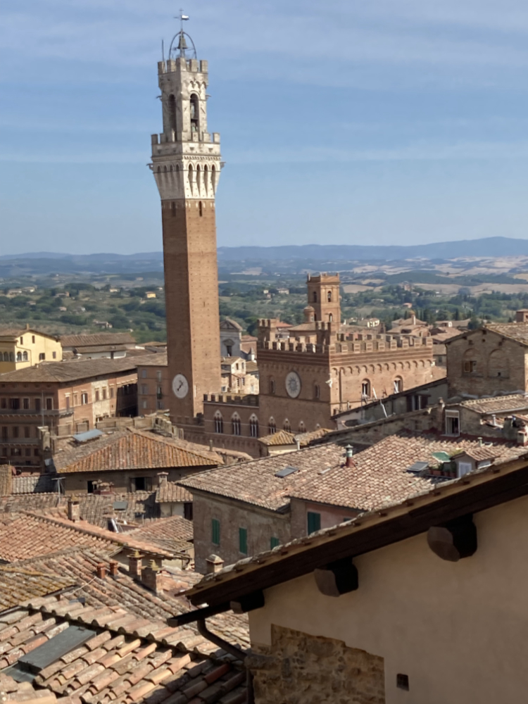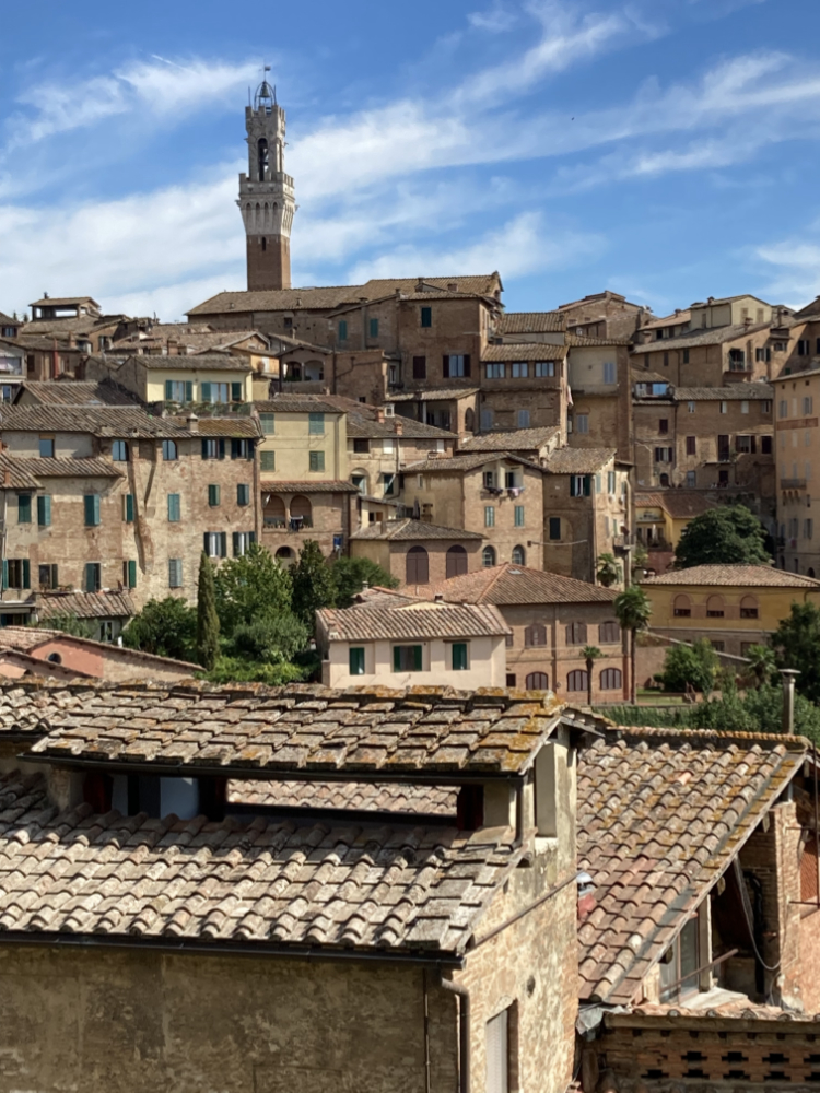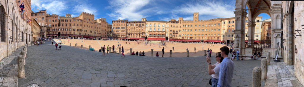 A brief history of Siena. As with many Tuscan towns and cities, Siena began as an Etruscan city (8th Century B.C.) and then became a Roman city. It’s primarily know today, however, for it’s “golden age” during the end of the Middle Ages into the Renaissance. It was a center for banking and had it’s own distinctive Sienese school of painting. During this time, it was in competition with Florence which often manifested in warfare. Eventually, Florence came out on top. The arrival of the Black Death (bubonic plague) in 1348 was the beginning of the end of Siena’s prominence in Italian affairs.