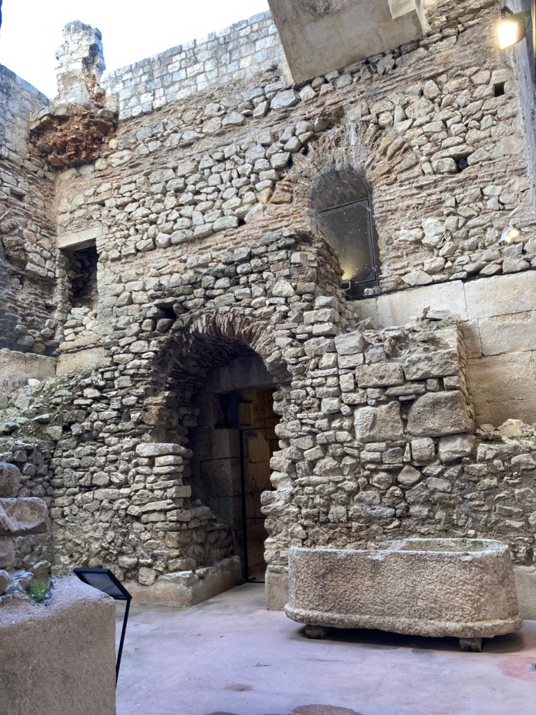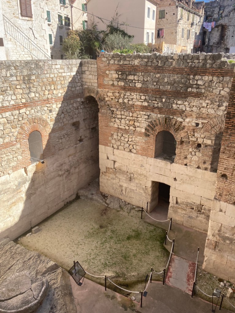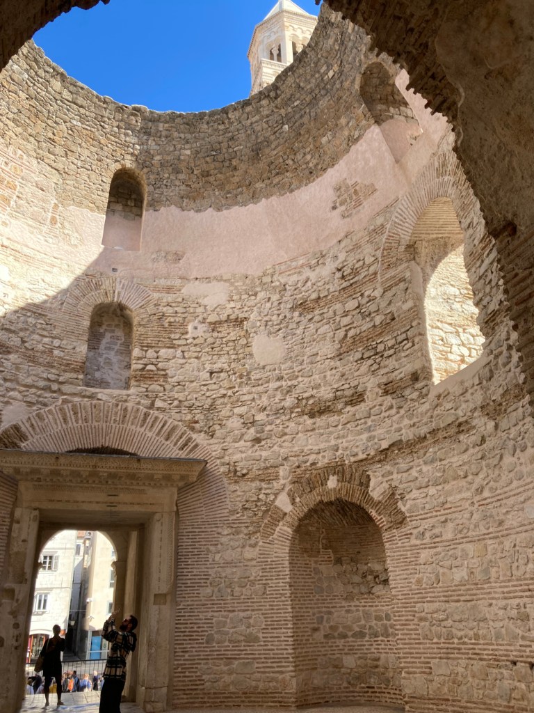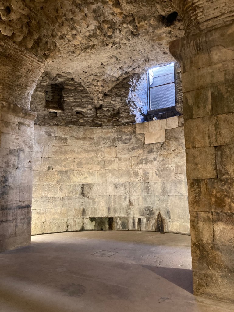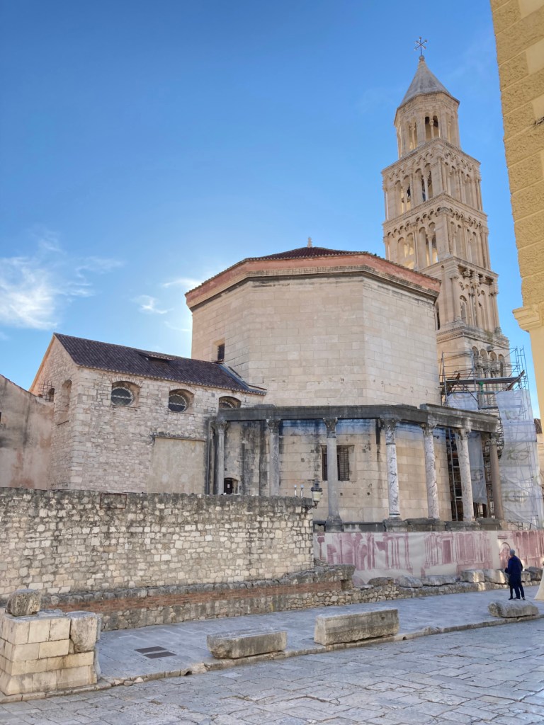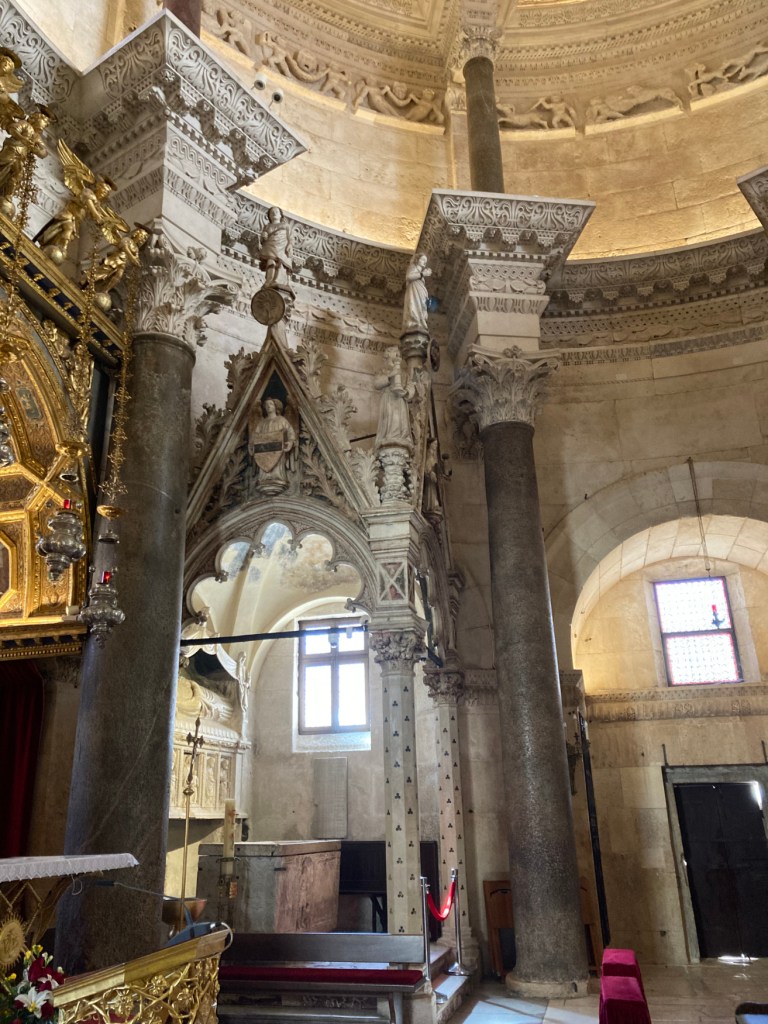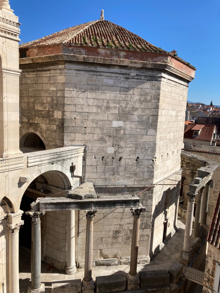 Diocletian had a 2-story, octagonal mausoleum built to house his remains. The locals who moved back in during the 7th century CE were mostly Christian. They decided the mausoleum would make a great, albeit small, cathedral and, so, they converted it.