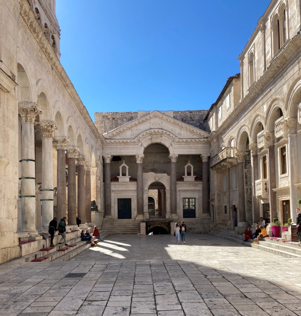 If you visited Diocletian, you would approach his residence by walking down the colonnaded Peristyle. The building at the end is the Vestibule.