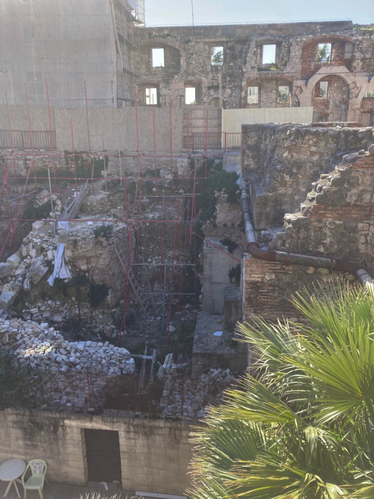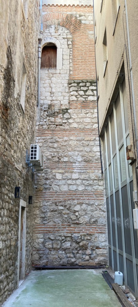 The original seaside wall of the palace is visible in the upper half here. You have to imagine open arches between the columns where you could view the Adriatic as you strolled.