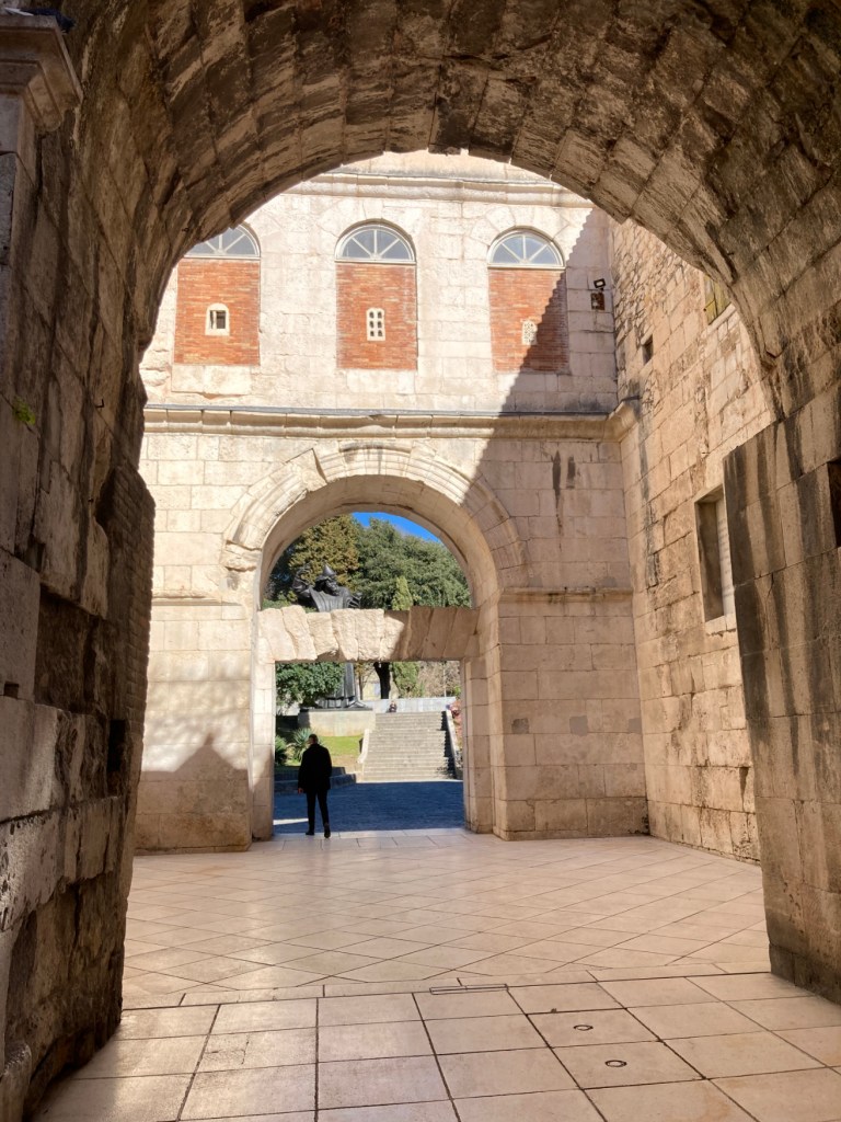 Gregor of Nin(1929) This one is actually just outside the Gold Gate of Diocletian’s Palace in Split. The statue is 28 ft. tall. Gregor of Nin was a Croatian bishop in Dalmatia who, around 925CE, tried to get the Pope to allow use of the Croatian language in the celebration of the mass.