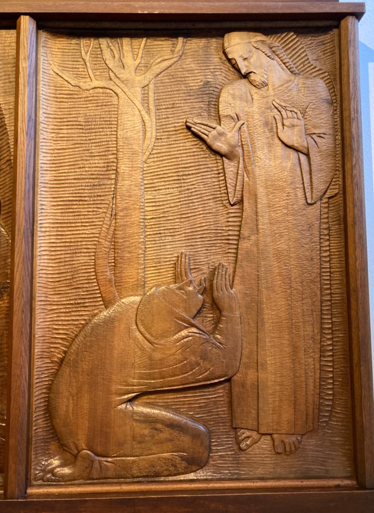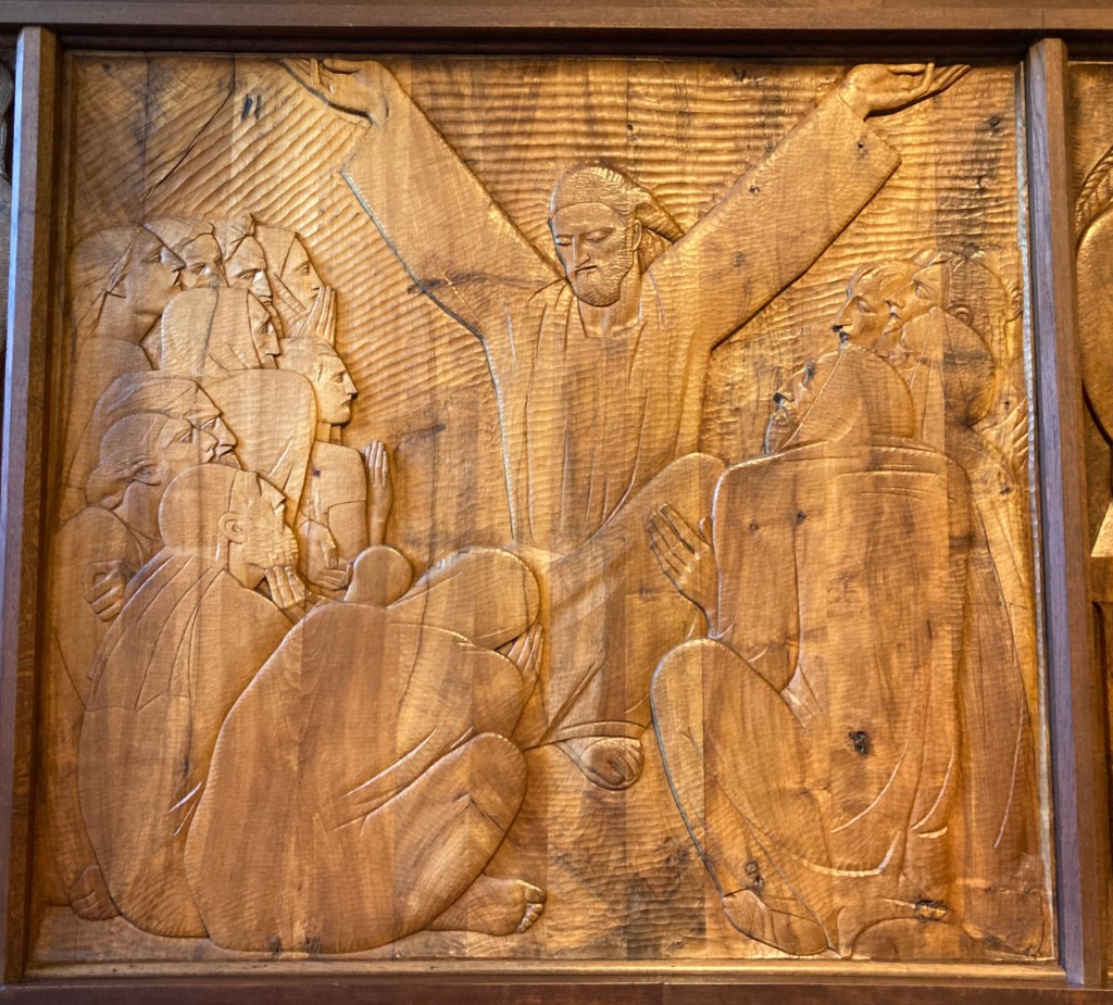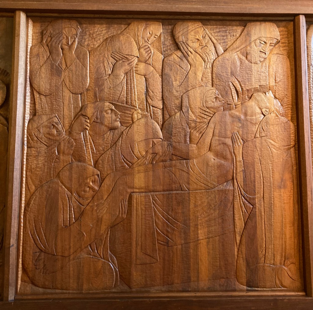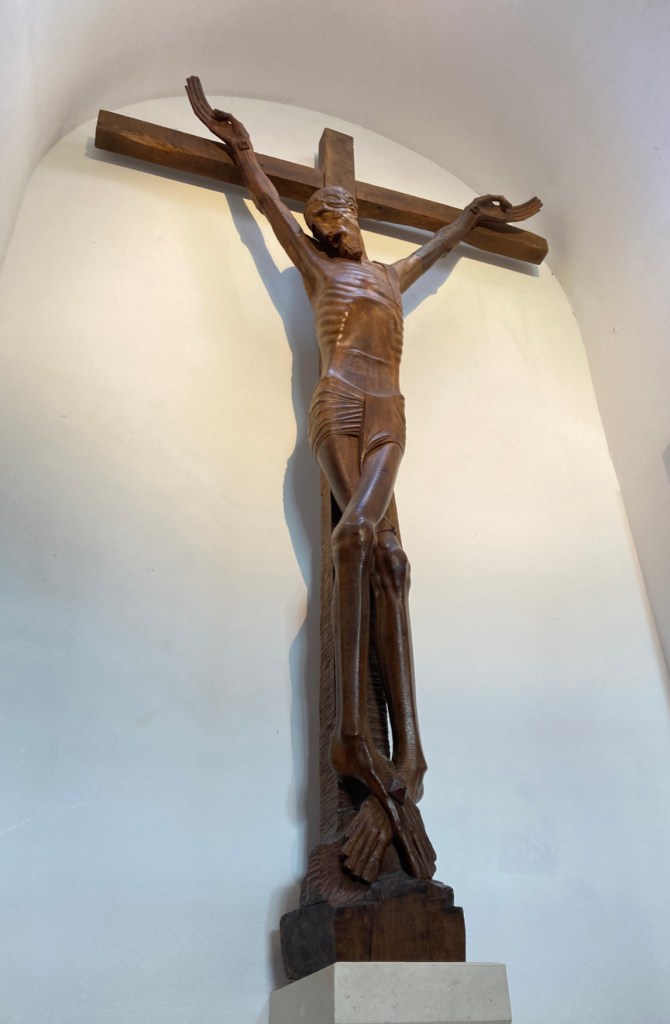 In 1939, Meštrović bought a property that was originally a fortified Renaissance estate. It’s just down the street from the villa. He chose this location to develop a vision he had for a unique religious/artistic installation- kind of an early immersive experience. For 30 years, Meštrović had been working on 28 wooden relief panels depicting scenes from the life of Christ and a Crucifix. He filled the estates chapel with these works.