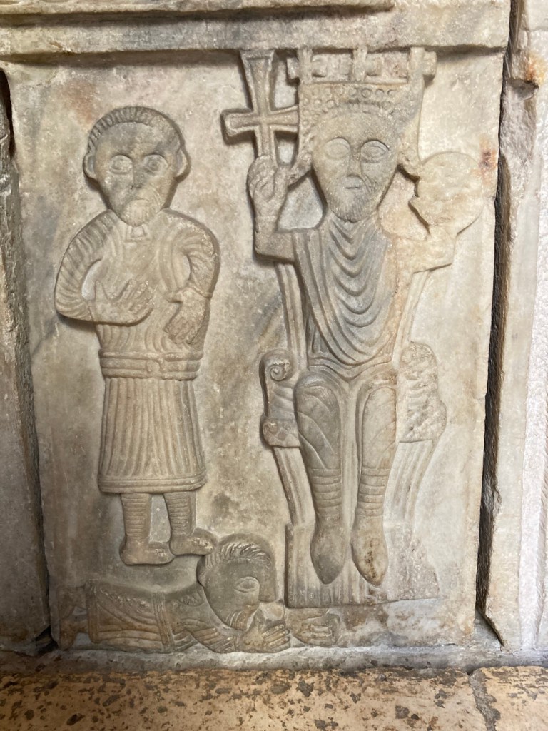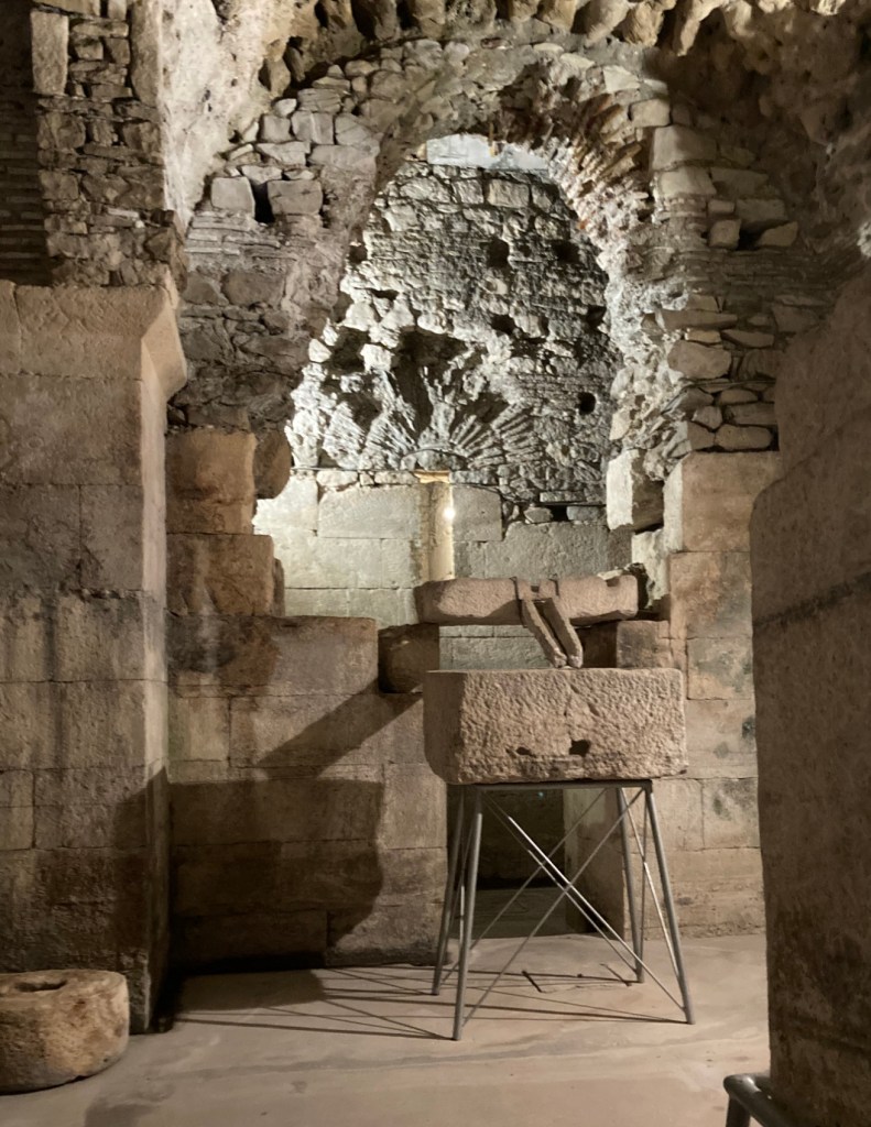 This is the tomb of Split’s second saint, St. Anastasius. He was tied to a millstone and dropped in a river. St. Anastasius lies in repose on top of that millstone with a rope passing through the hole in the middle.