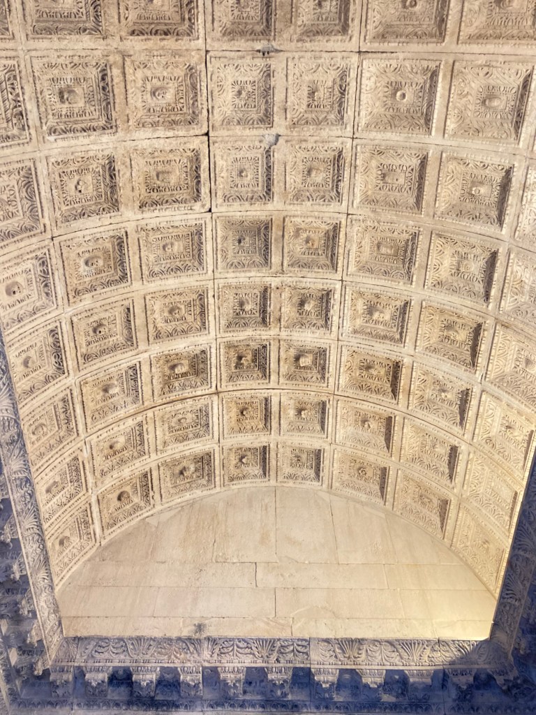 The columns are original and the frieze at the top depicts emperor-like activities- chariot racing, horseback riding, hunting, etc.